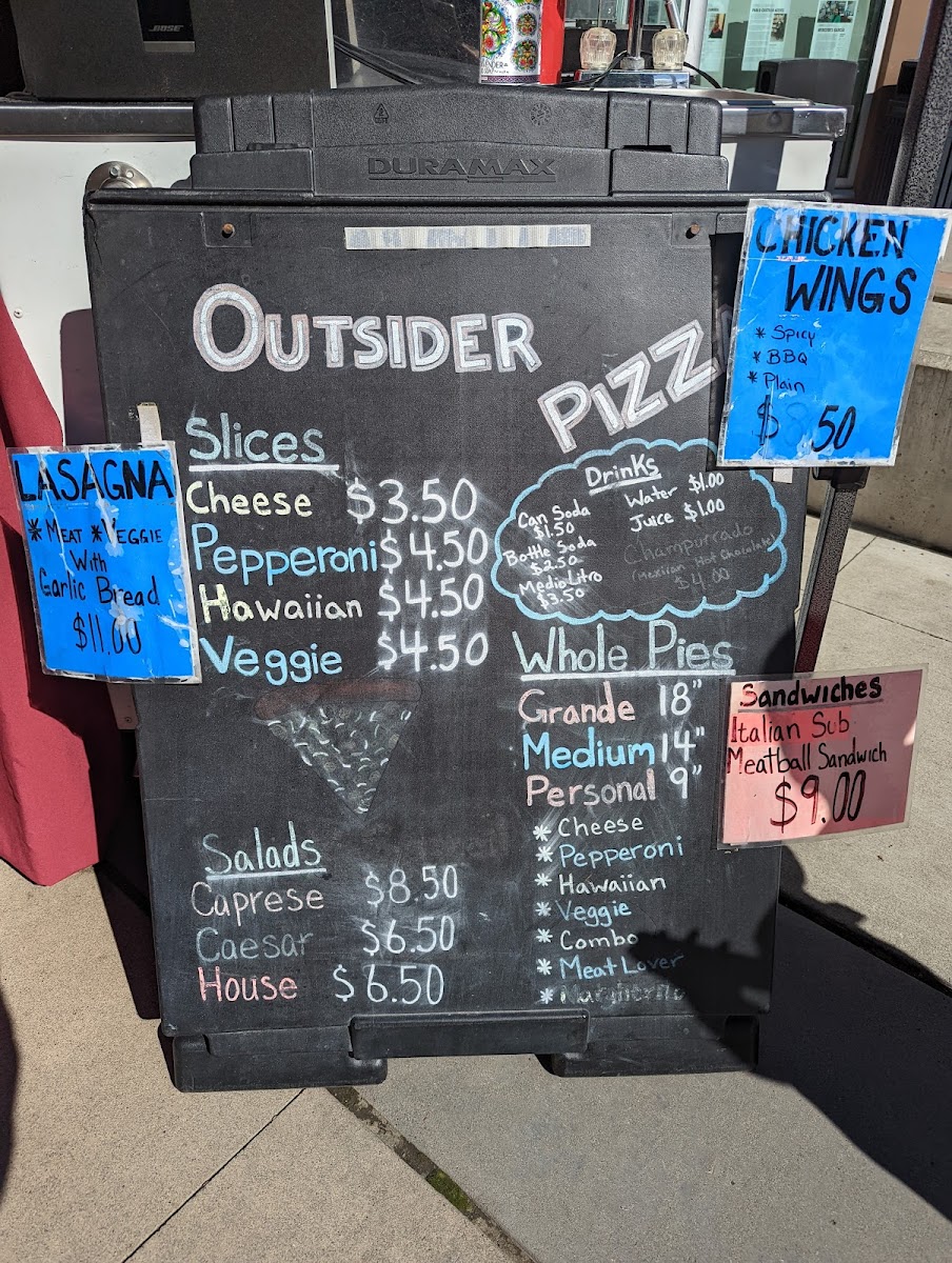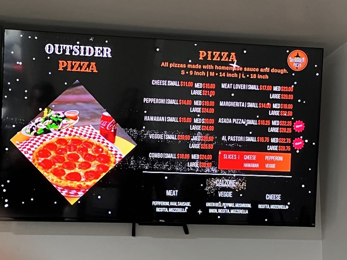 Customer praise highlights the inviting atmosphere, prompt service, and flavorful dishes. From the expertly seasoned chicken mole to the highly recommended meat calzone and tacos, Outsider Pizza offers more than just pizza — it’s a celebration of bold, authentic tastes.